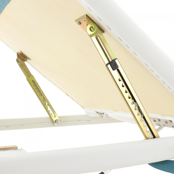 - Массажный секционный стол имеет механизм регулировки высоты, меняя ее в диапазоне 61-82 см. За счет этого мануал-терапевт можно «настроить» его под свой рост, чтобы снизить нагрузку на свои мышцы.